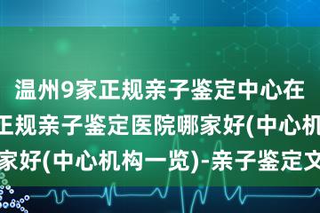 随着科技的进步,亲子鉴定的技术也日益完善和精确。那么,咸宁市内的无创亲子鉴定机构分布何处?此类鉴定的费用是多少?又需要哪些样本呢?实际上,全国各地均有提供无创亲子鉴定的机构,选择最便捷的地点即可。进行无创亲子鉴定的成本如何?这一费用因地域而有所不同。目前在咸宁市,无创亲子鉴定的价格大约为4000元,不同机构的收费标准可能存在细微差别。以下是整理的一些咸宁市正规的无创亲子鉴定机构列表。